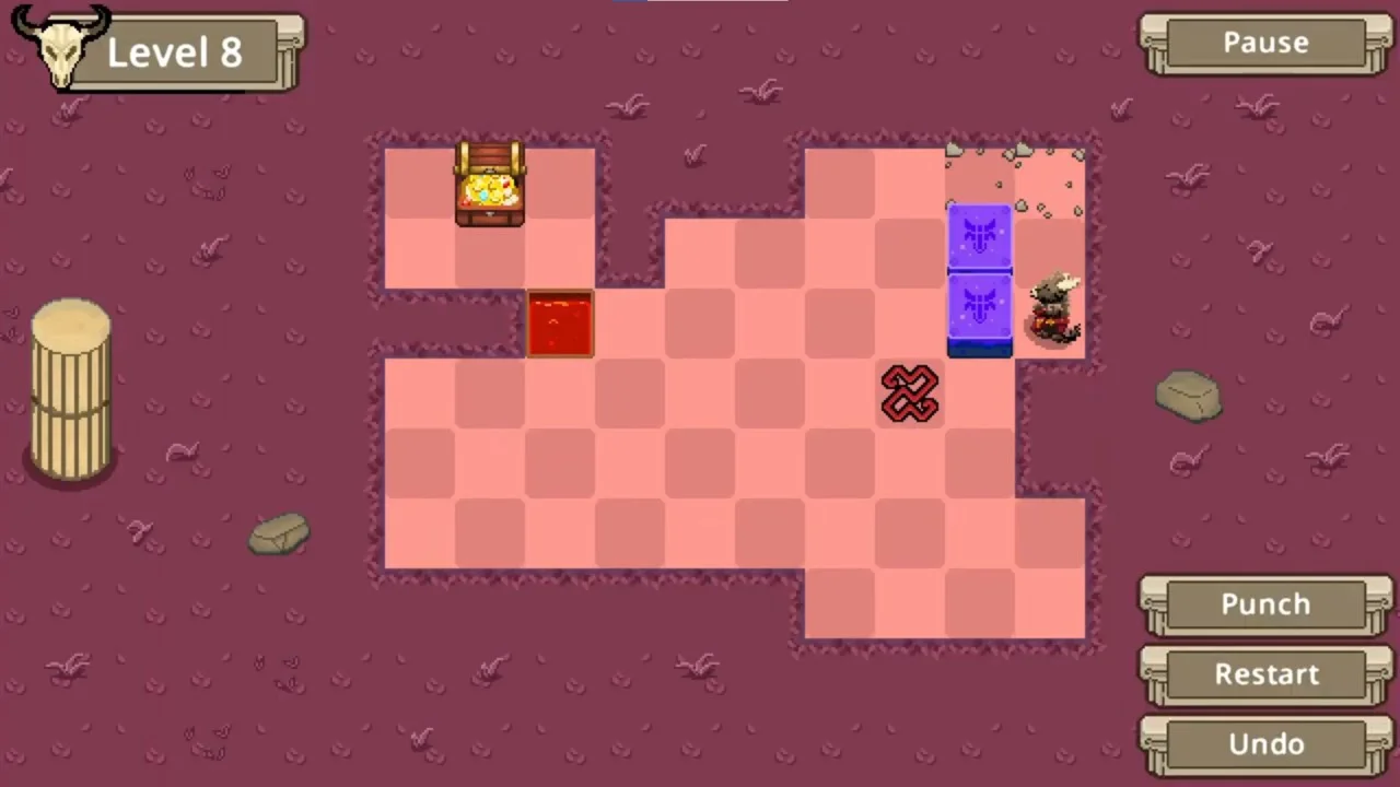 Throughout three unique biomes, you'll discover increasingly wacky mechanics: breakable blocks, arrows that change the direction of blocks, teleporting traps, and even floors that make everything stop instantly. Each new world creatively mixes these elements, requiring strategy, logic, and a lot of patience.