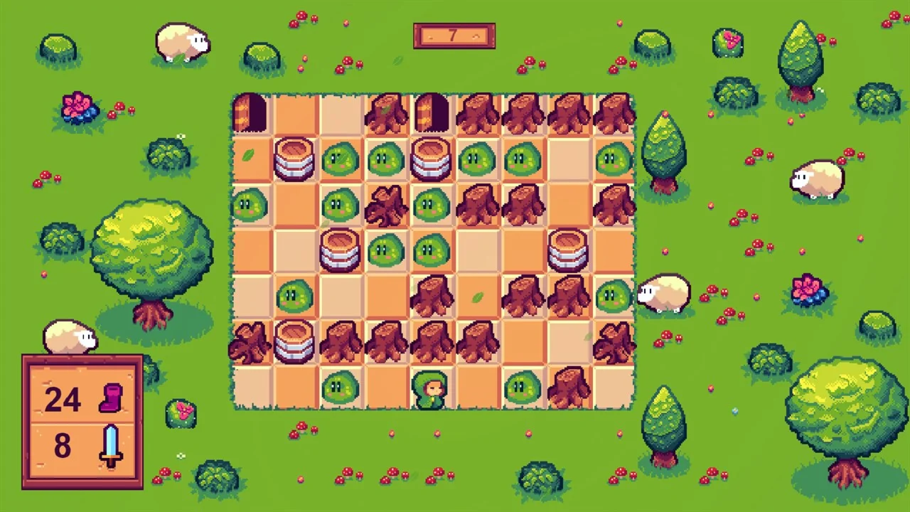 Slime Ranger: You are on a quest to find and defeat the Slime King. With a limited movement, you need to think carefully about every step until you reach the door. Push boxes, find keys, beware of traps, and slay every slime that get in your way!