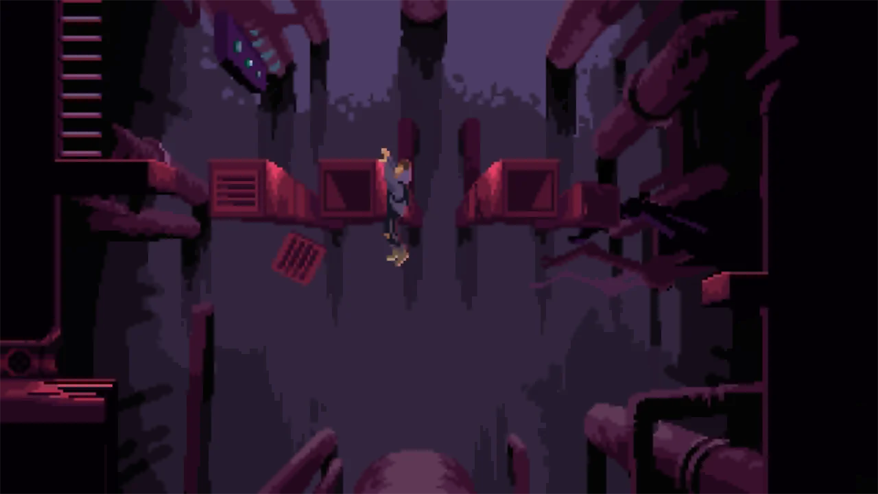The game features hand-drawn pixel art graphics and custom animations that are integral part of the gameplay, along with dynamic lighting, minimalistic sound design and immersive cutscenes for an atmosphere that will keep you on your toes from the very beginning.