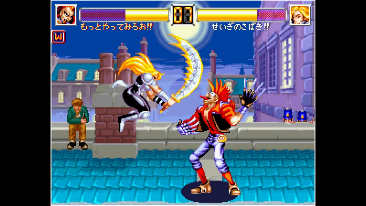 WORLD HEROES 2 JET is a fighting game released by SNK in 1994. It is the third title in the WORLD HEROES series. Sixteen heroes, villains, and other fighters have gathered to determine who is the strongest in the world. With dashes, back steps, and the addition of a counter system, you can enjoy speedy battles.