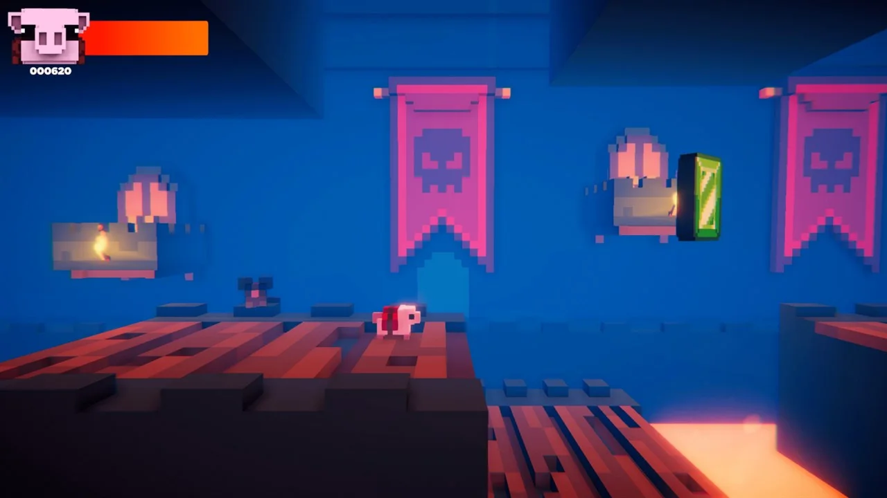 Примите этот вызов, если посмеете. Вам предстоит одолеть сложные уровни и усмирить мощного дракона, хранителя несметных сокровищ. Совсем забыли упомянуть — никаких суперспособностей у вас нет. Вы лишь маленькая воксельная свинка, которой предстоит пробраться через тёмное и опасное подземелье. Счастливого выживания!