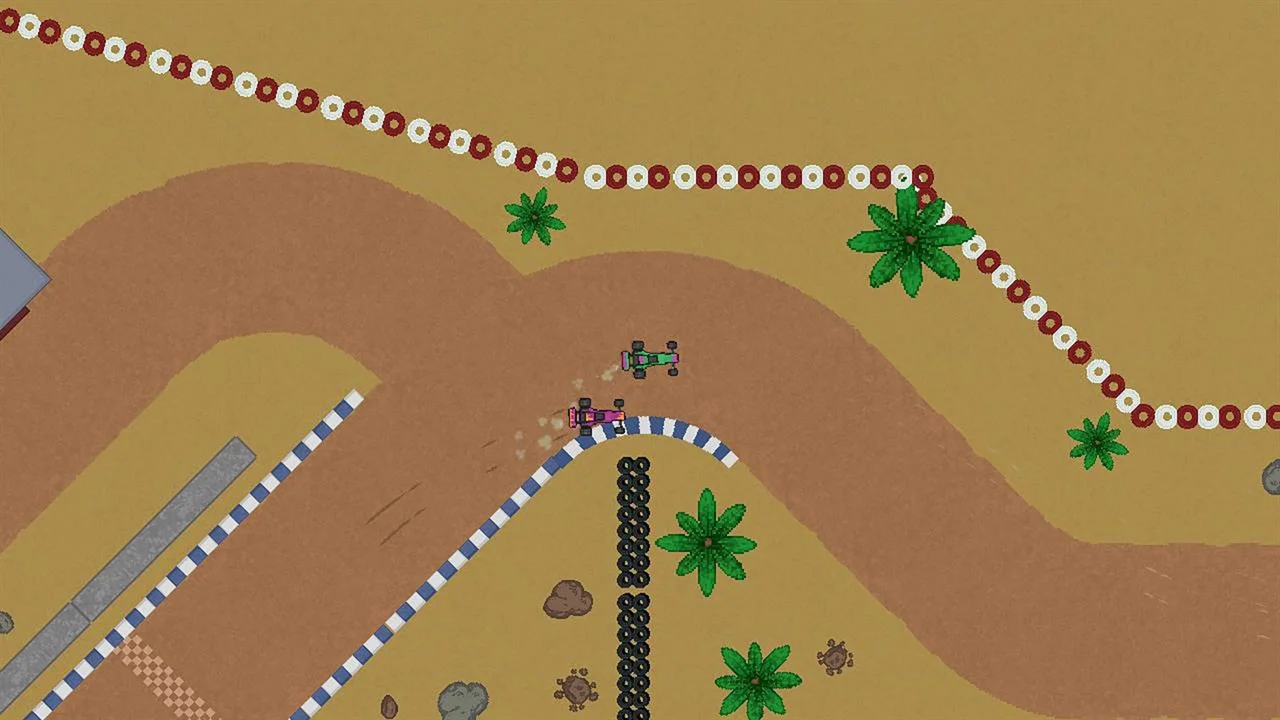 Now put your foot down and compete in exciting top-down pixel art races!