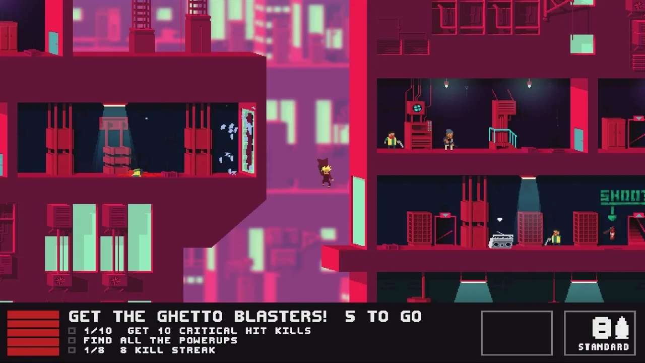 NOT A HERO: SUPER SNAZZY EDITION предлагает вам вступить на тропу предвыборной кампании в увлекательной политической игре в 2,25D от Roll7. Пройдите все 28 уровней, стреляя и выполняя скольжение и казни, прочувствуйте веселый английский юмор и убедите весь мир проголосовать за BunnyLord.