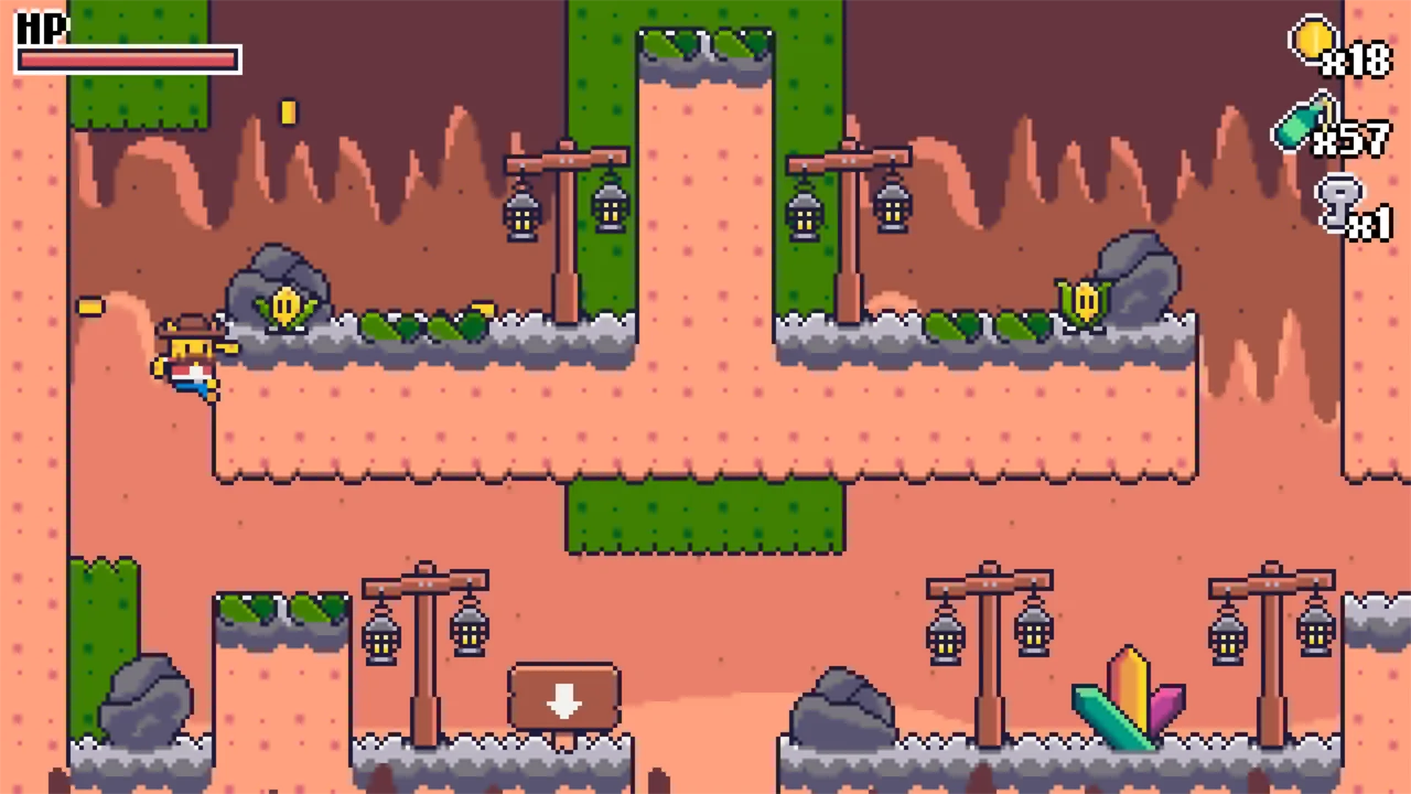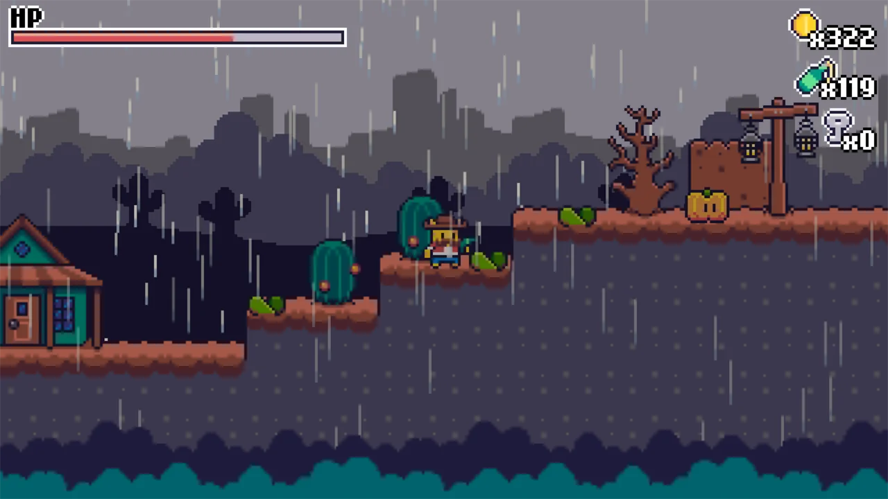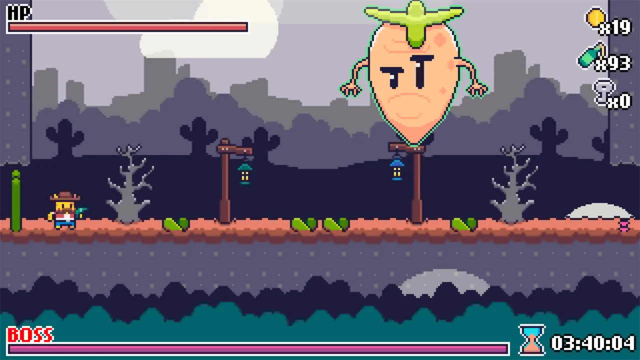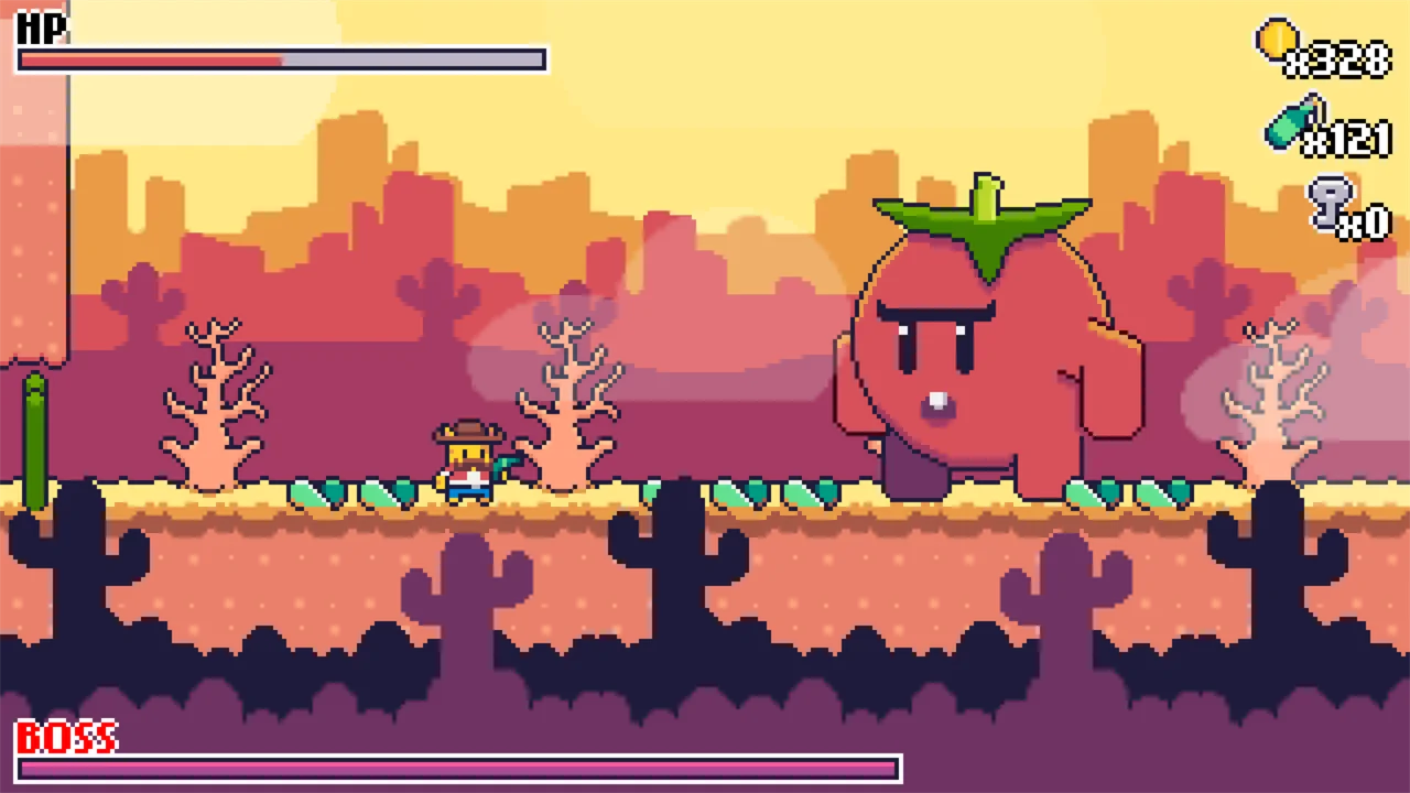 Wild West Crops — это мини-метроидвания в стиле ретро, рассказывающая историю Эль Гатито, крутого кота, который борется с мутантами-растениями, чтобы спасти Мяутаун.