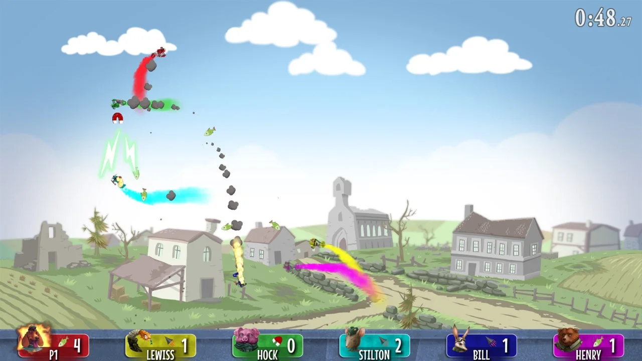 В этой безумной локальной сетевой игре вас ждут захватывающие битвы на самолётах под управлением пилотов-зверей! До восьми игроков пытаются сбить друг друга огнемётами, замораживающими лучами и многим другим!
