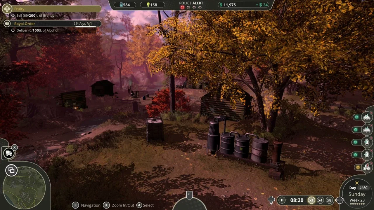 Мы постарались как можно более реалистично отобразить жизнь самогонщика. Вы будете управлять рабочими, которые будут создавать и обслуживать ваше оборудование, вы будете покупать ингредиенты, открывать технологии, планировать поставки и финансы, следить за тем, чтобы оставаться как можно более незаметным - и решать, кому доверять и с кем работать.