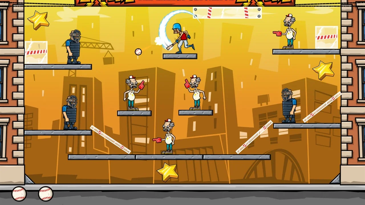 Baseball Riot - игра-головоломка, основанная на физике движения предметов. Игра погружает вас в мир полного безумия! Вы управляете Гейбом Карпаччо - завершившим карьеру бэттером. Он должен освободить свою бывшую команду от гнета компании Explodz. Бейте бейсбольными мячами хулиганов. Направляйте мяч рикошетом от поверхностей, чтобы поразить несколько целей разом. Взрывайте ящики с Explodz! Постарайтесь пройти каждый уровень, получив 3 звезды. Пройдите более ста уровней и спасите команду!