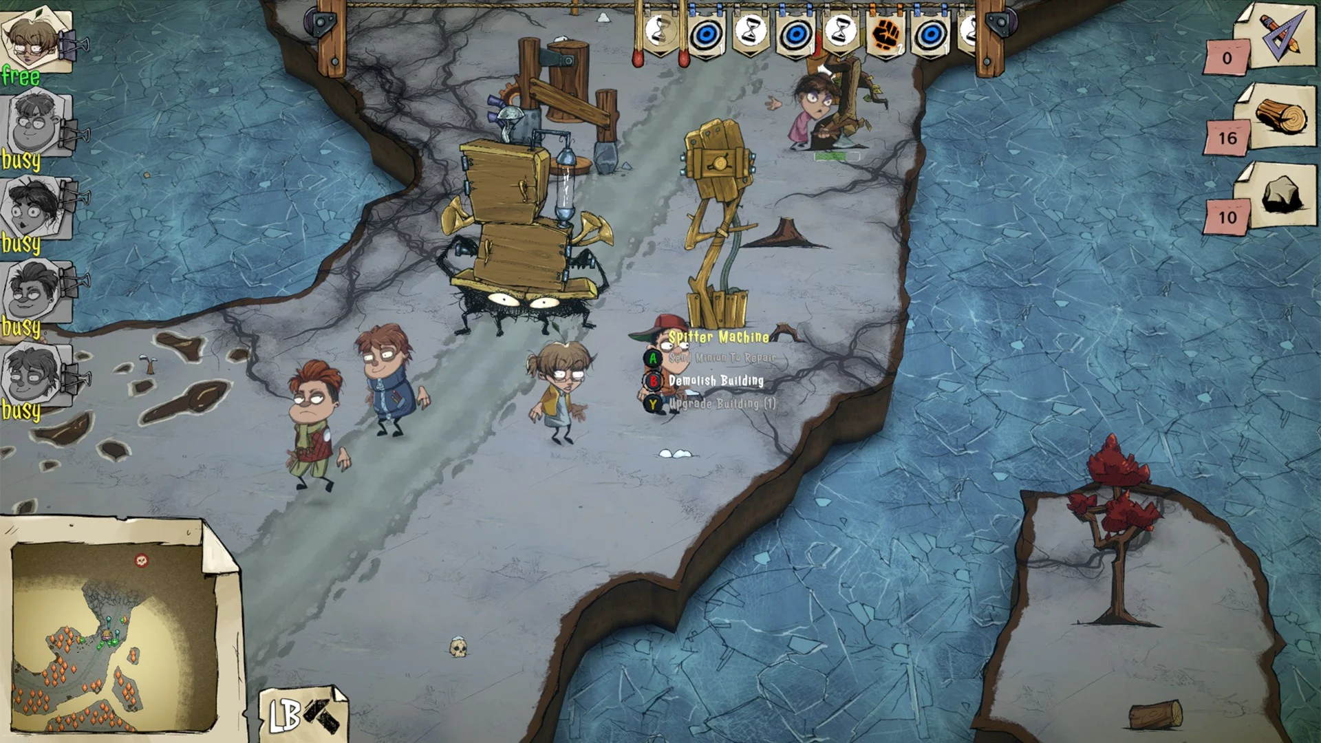 БАШНИ, ОБНОВЛЕНИЯ И МИНИОНЫ Собирайте ресурсы, такие как дерево и камень, чтобы строить и улучшать оборонительные башни. В дополнение к рогатке они станут вашей главной защитой от противников. Используйте своих помощников в бою, поручайте им простые задания и защищайте свою базу!