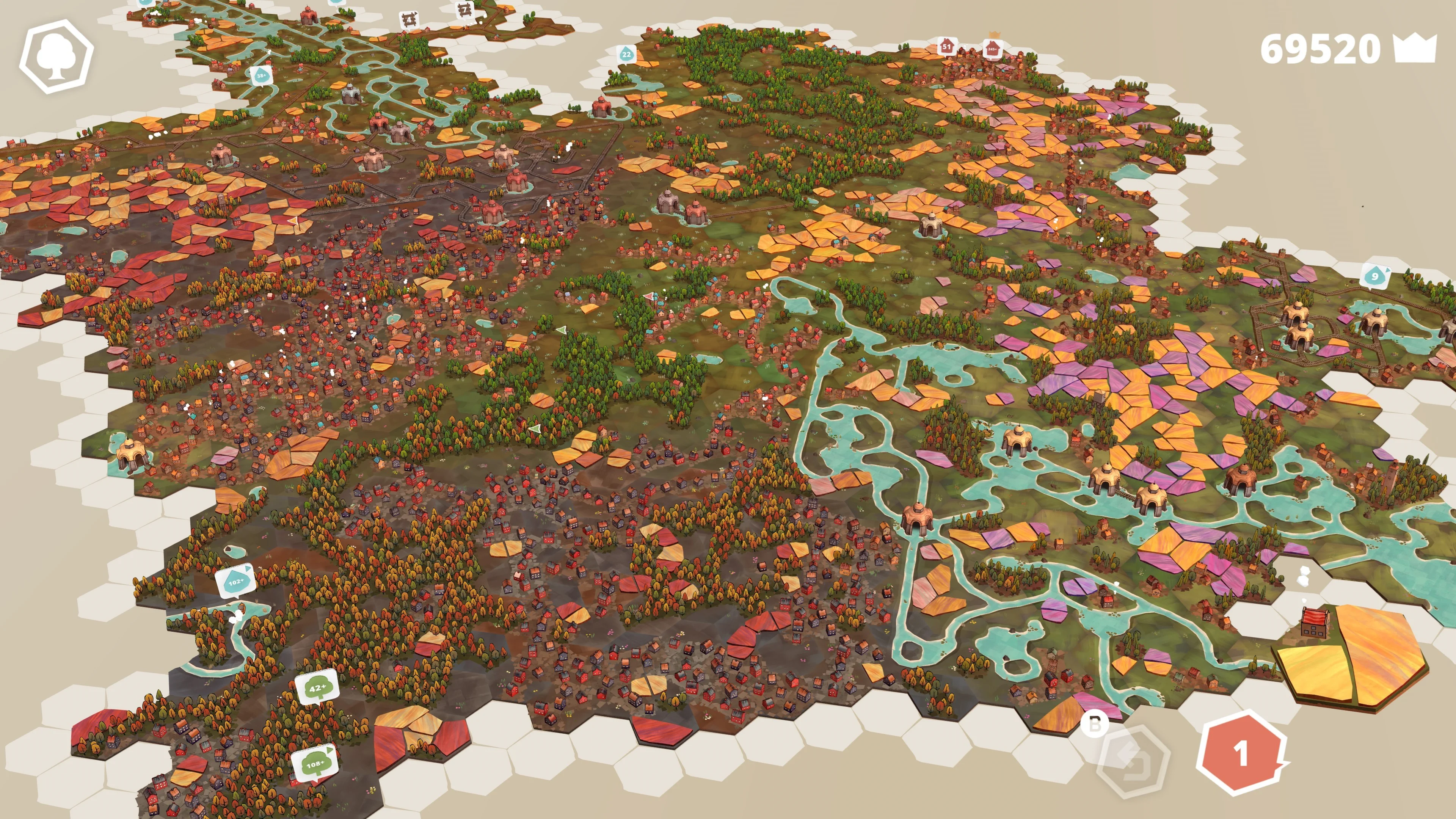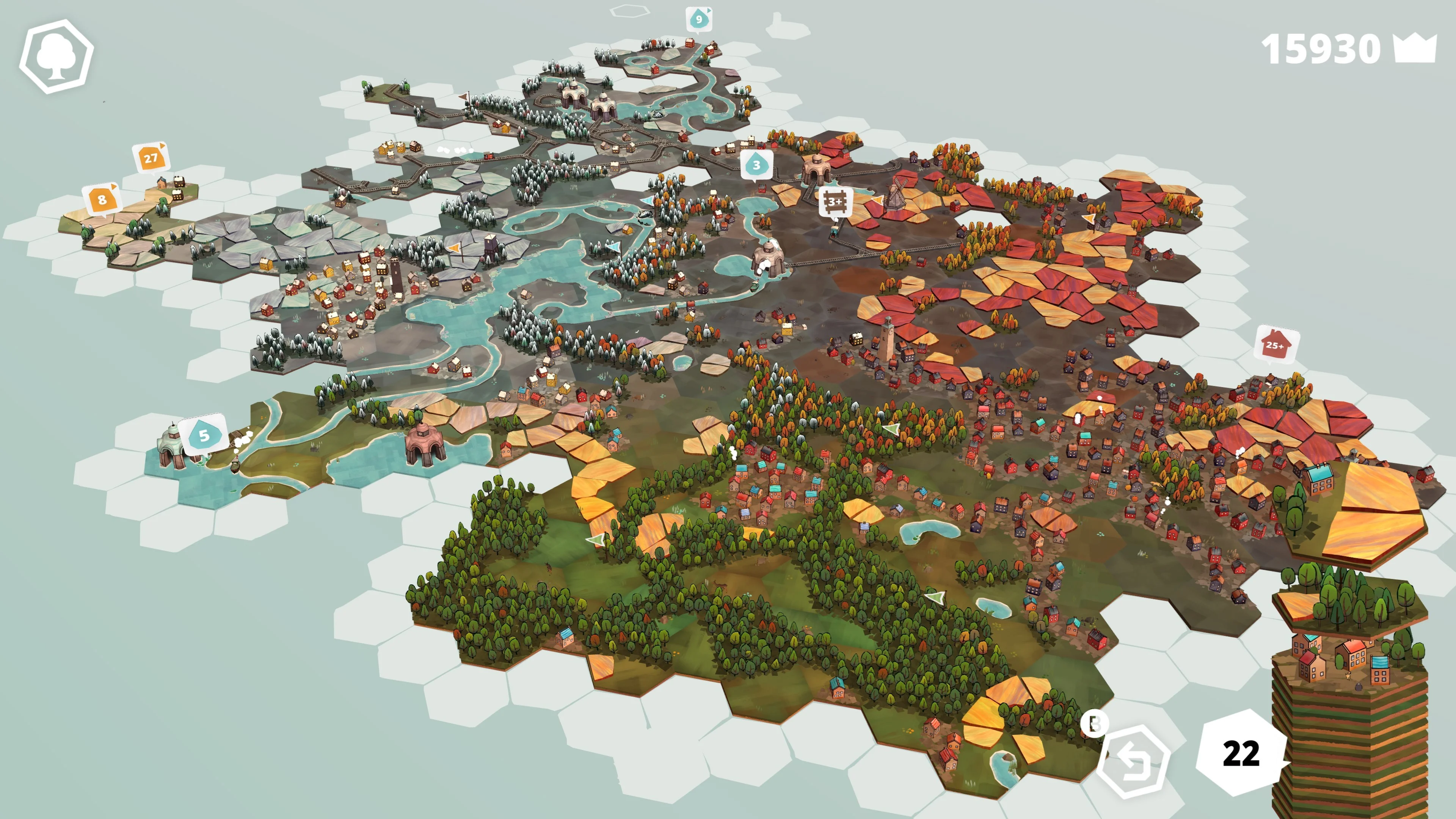 По мере расширения ландшафта вы будете продвигаться в новые, красочные биомы и открывать заранее размещённые игровые объекты, которые откроют вам долгосрочные задачи. Выполняя эти задачи, вы можете разблокировать новые плитки, новые биомы и новые задачи.
