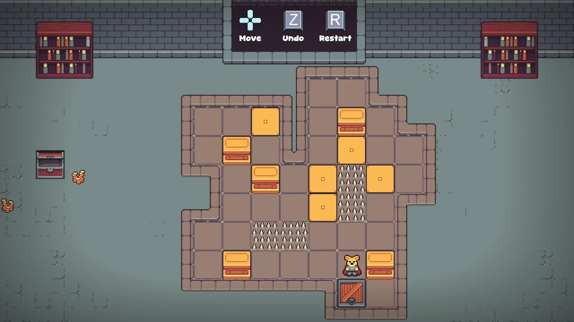Crate Fang — это пиксельная головоломка сокобан с видом сверху, в которой вы играете за волка в золотых доспехах, исследующего забытые средневековые руины. Ваша задача: решайте головоломки с ящиками, аккуратно передвигая блоки на плиты давления, открывая путь через древние подземелья с умными, вручную созданными уровнями.