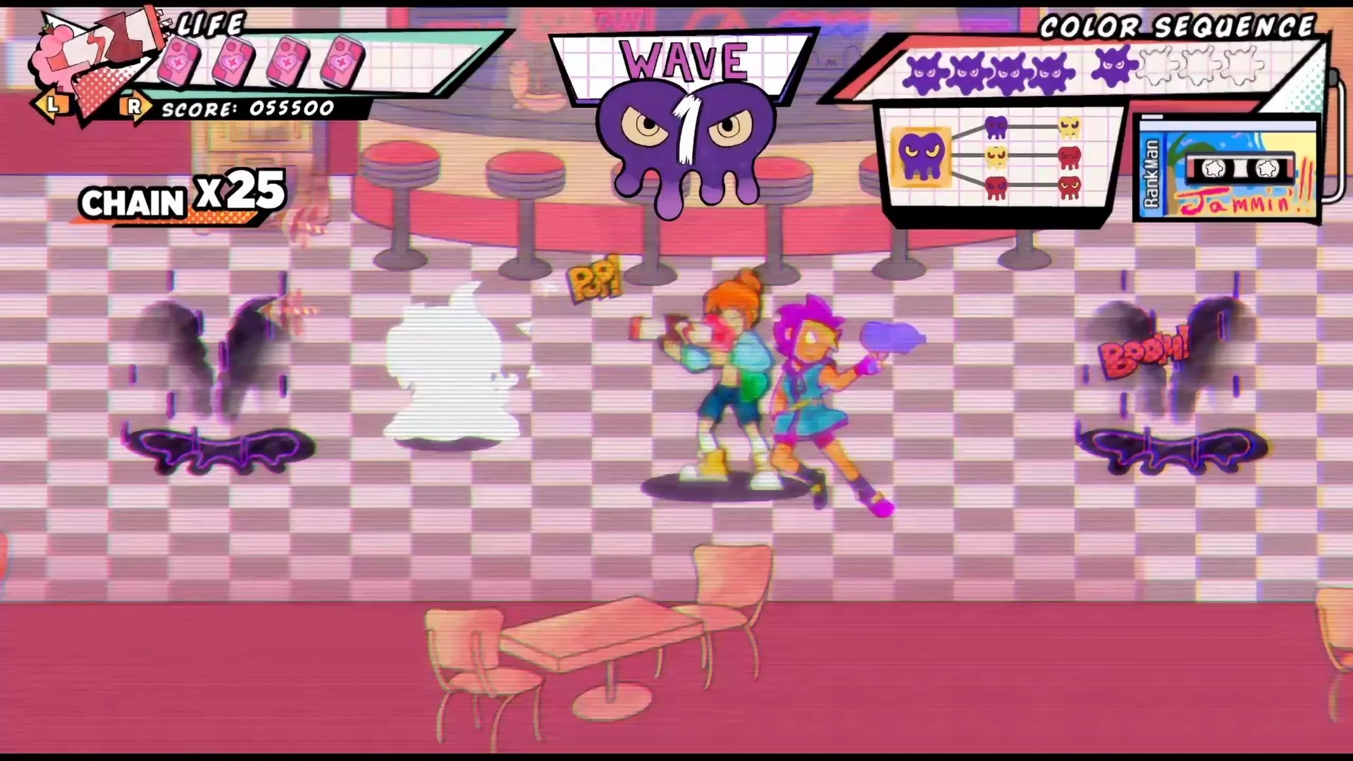 Join Ria Carbon along with the former PopSlinger heroine Gin in a whimsical adventure to save their planet from the otherworldly forces using their magical soda-powered guns while grooving to a funky and dynamic original soundtrack that reacts to your performance.