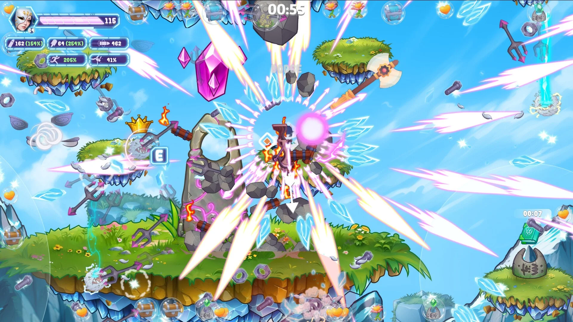 Sky Survivors — арена-шутер в жанре рогалик. Выбирайте из множества навыков, открывайте уникальных персонажей и оружие. Постройте «лестницу в небеса» — небесную башню, каждый этаж которой дает вашему персонажу уникальный бонус. Создайте свою собственную мощную сборку, чтобы выжить против полчищ монстров!