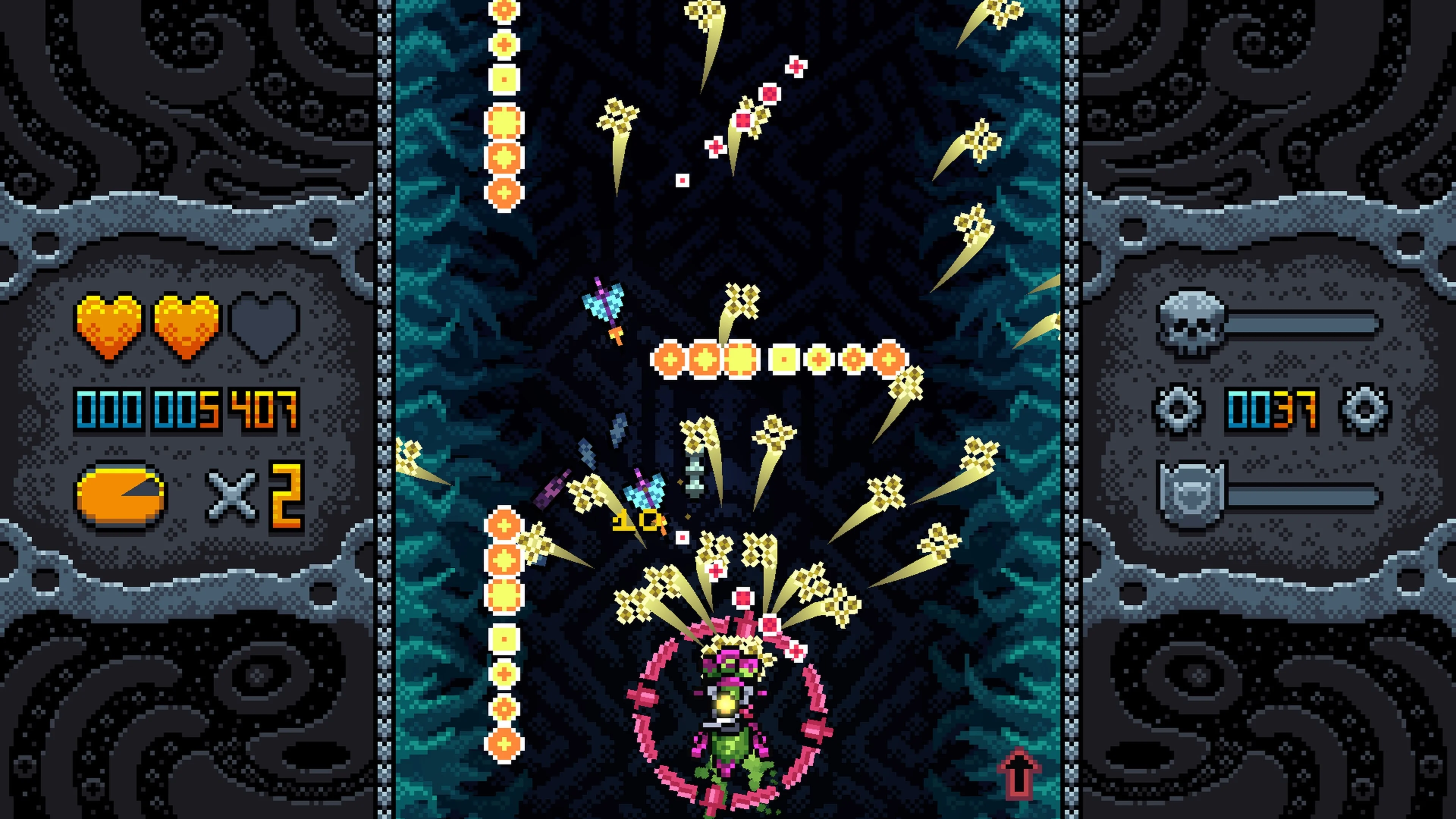 Приготовьтесь к вертикальной ретро-перестрелке, где вы сразитесь со стаями злых насекомых, используя сюрикены, бомбы и другое оружие в решающей схватке на выживание! Переключайтесь между точными выстрелами и атаками с разбросом, разблокируйте 4 уникальных ховербайка, собирайте монеты и улучшайте оружие, чтобы обернуть ставки в свою пользу во время следующего захватывающего вылета.