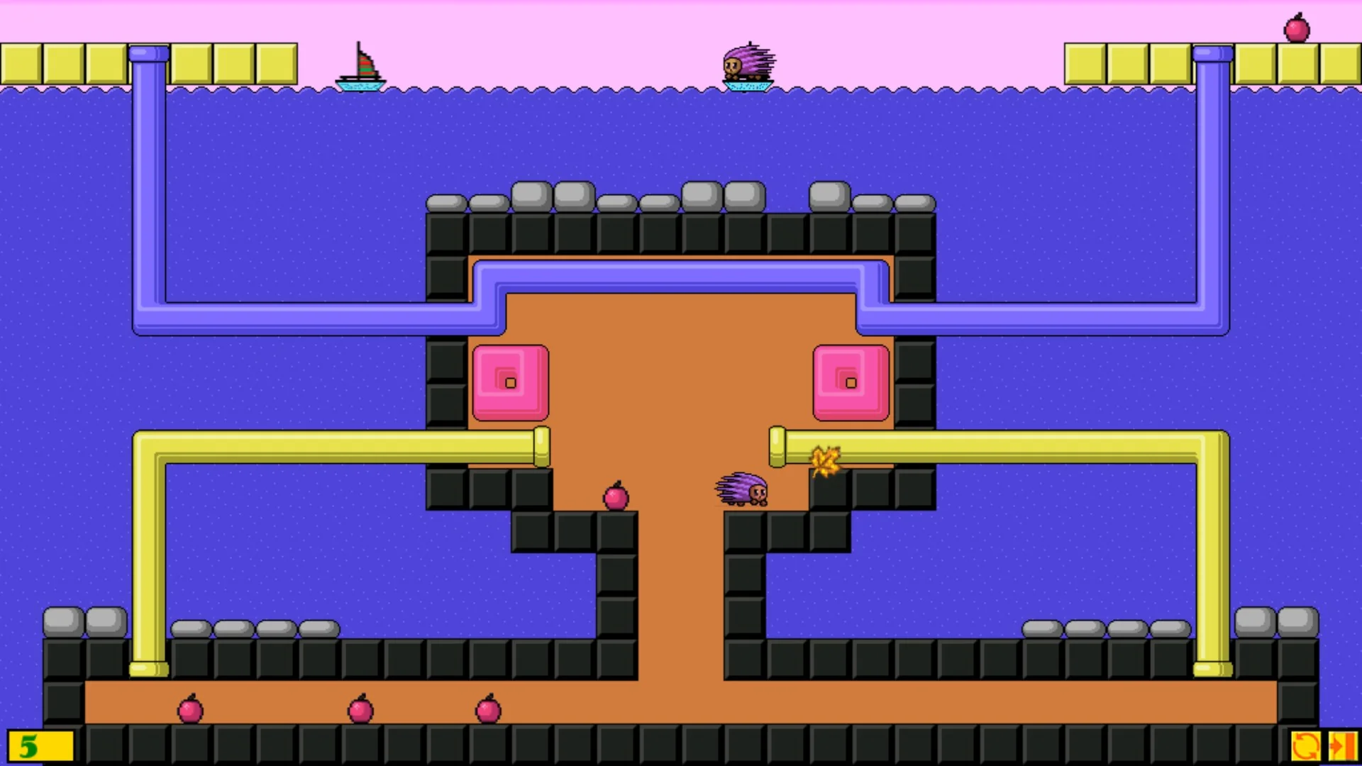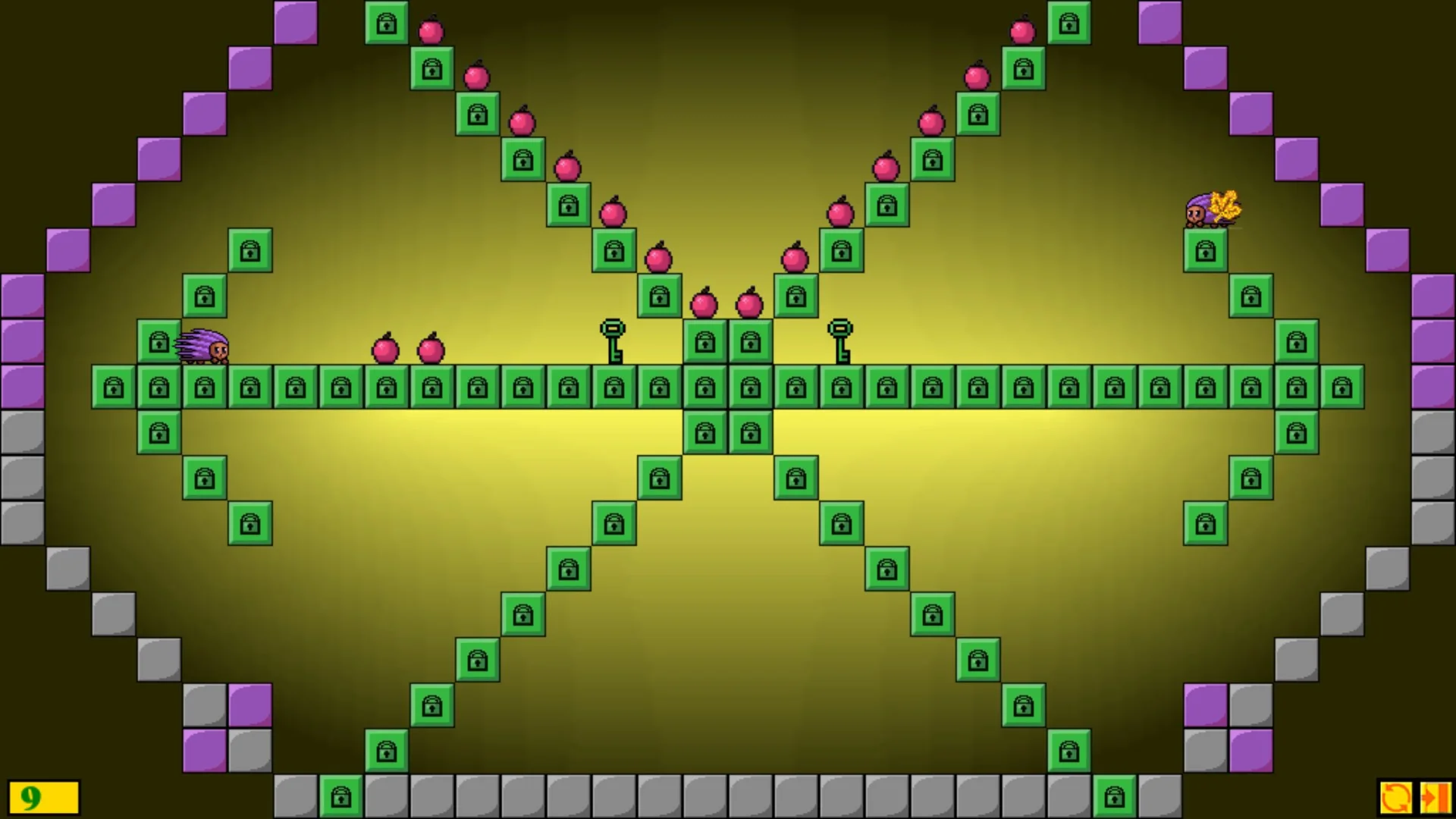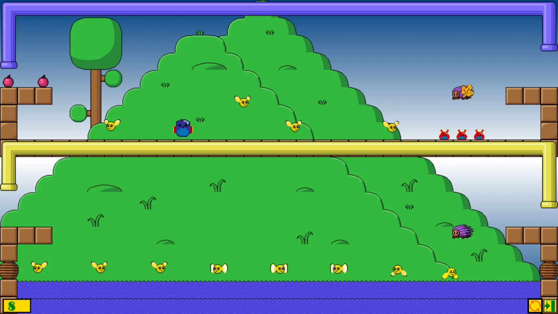 Уровень пройден, когда ежики соберут все яблоки.