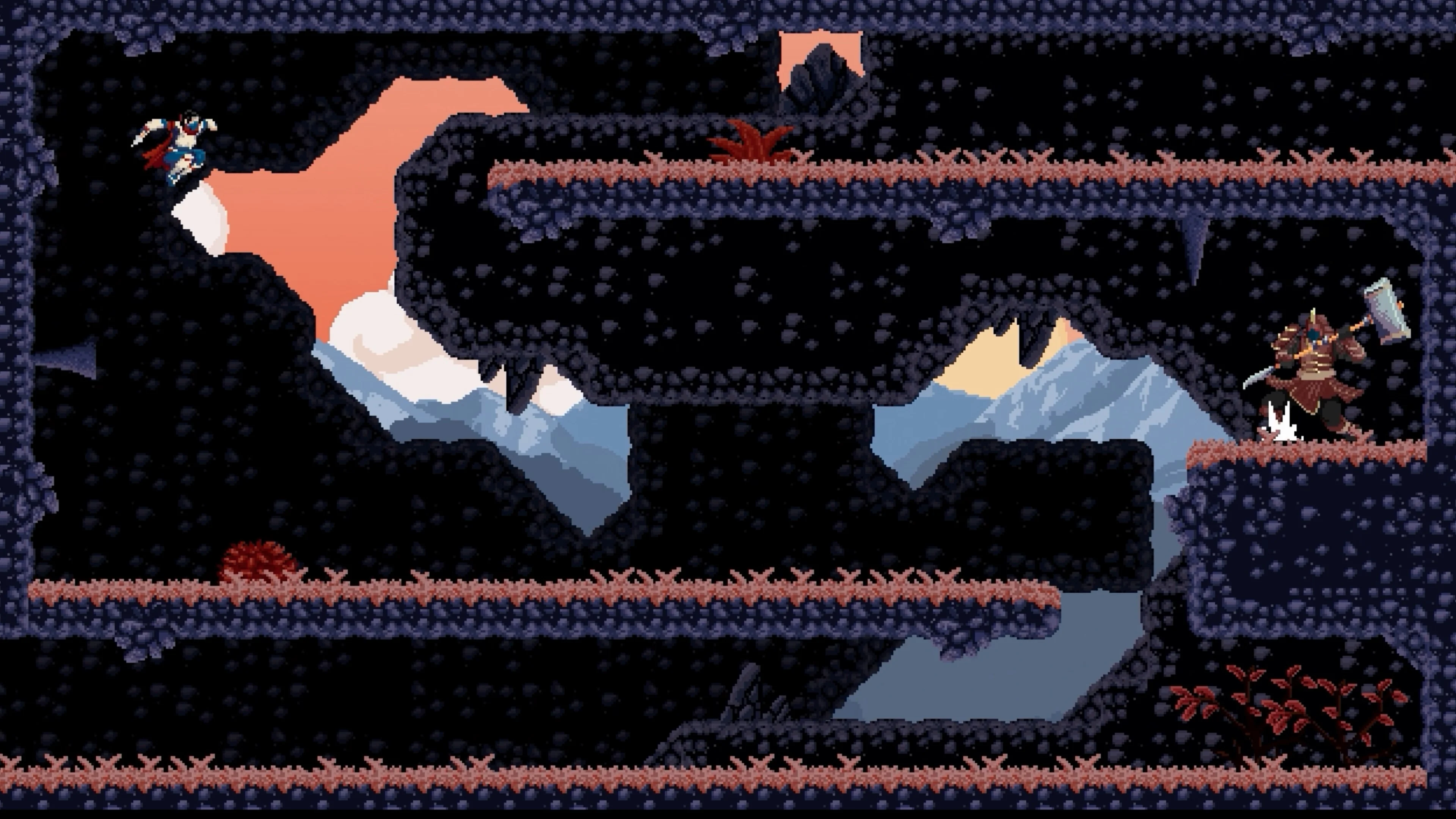 «Хроники двух героев» — это 16-битная аркада с боями, элементами метроидвании, японскими мифами и роскошной пиксельной графикой. А ещё в ней можно мигом переключаться между персонажами! Дабы уберечь феодальную Японию от гнева Аматэрасу, тебе предстоит освоить нереально уникальные стили боя Аямэ и Кэнсэя.
