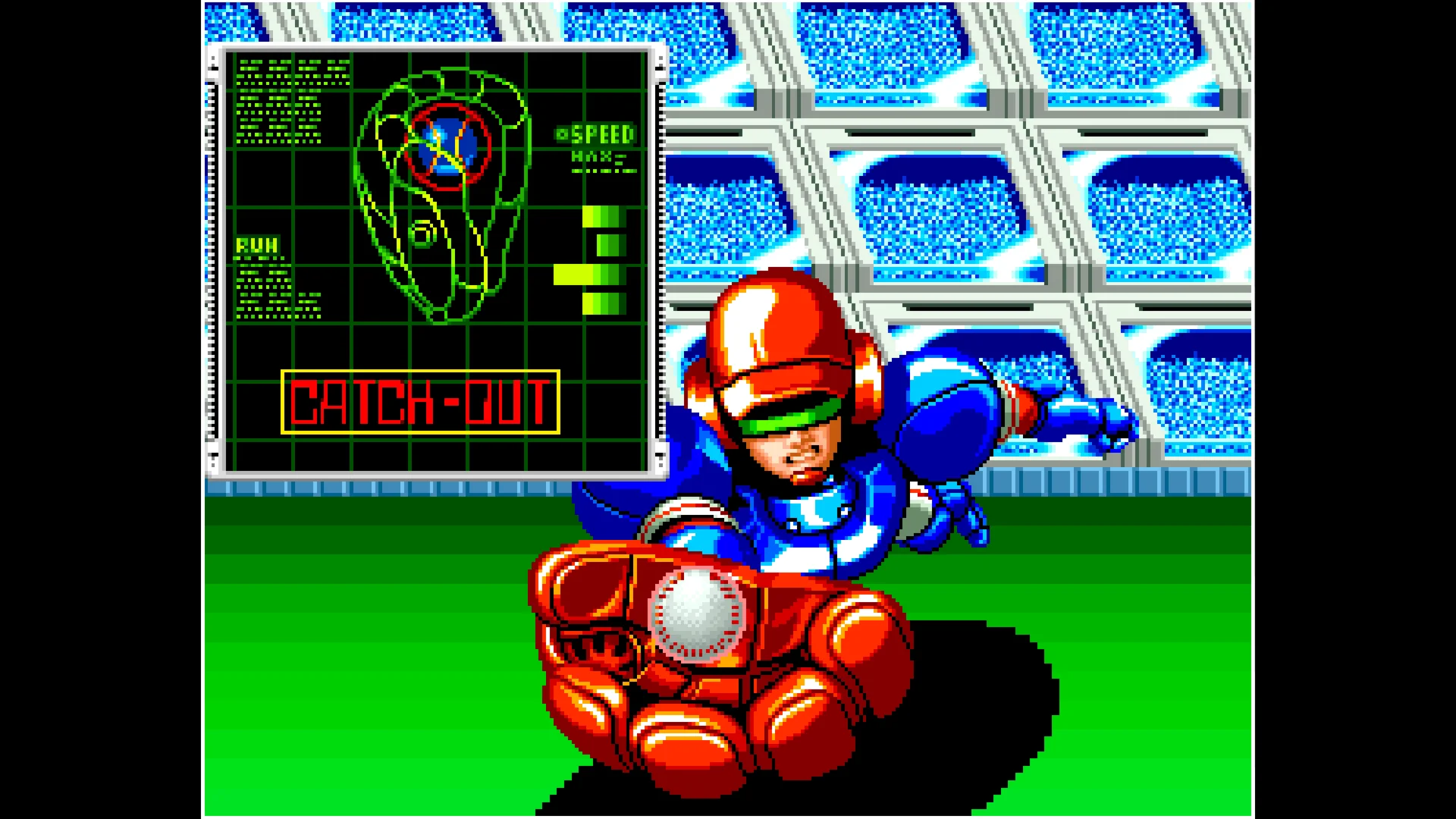 In the near future, there are two leagues with 6 teams each. Players pick their team, and compete for the championship. As the game progresses, landmines will be set up on the field, and armor can be purchased during games to reinforce players. These unique aspects make for a very different baseball experience!