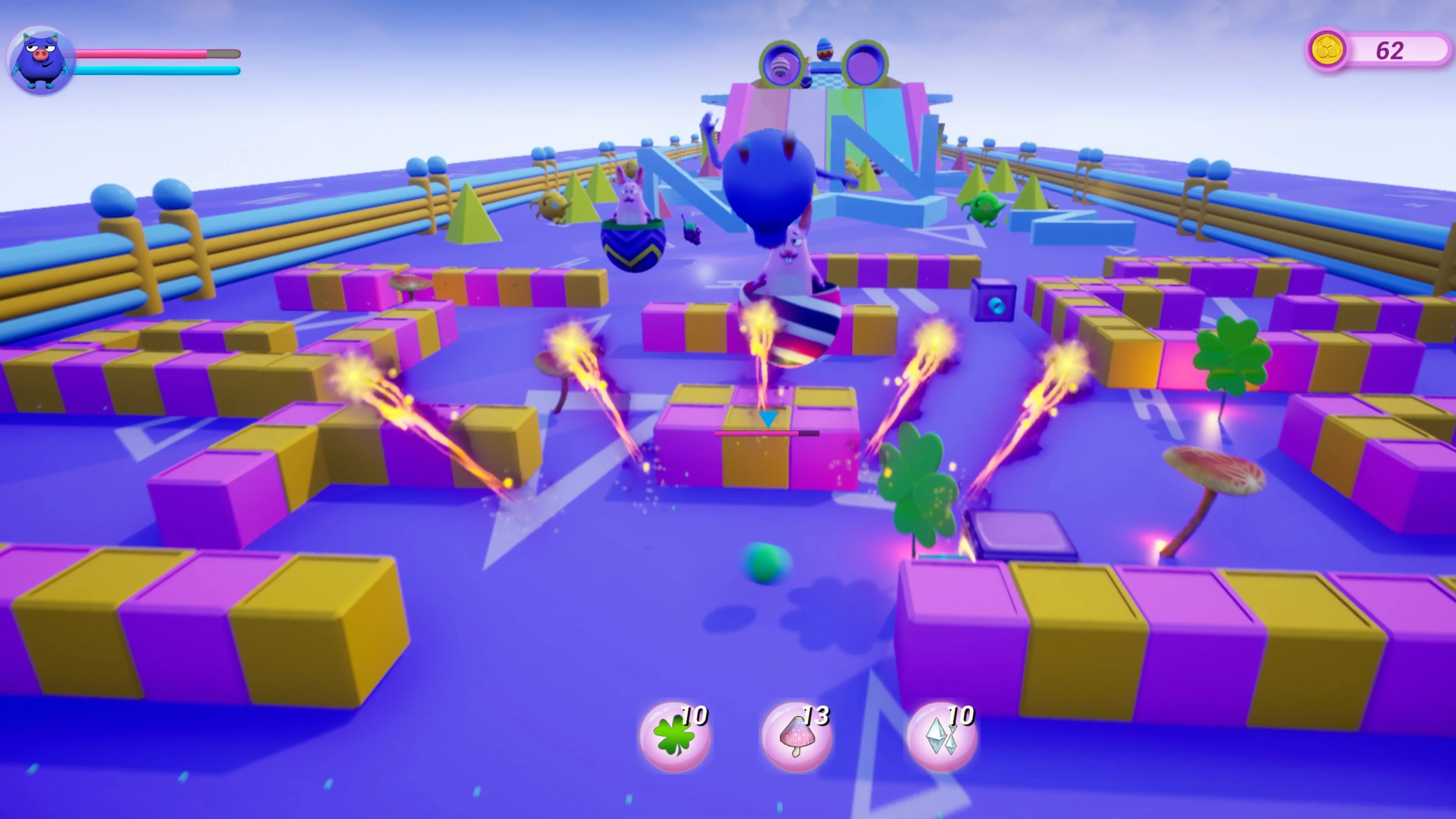 A 3D action game developed using the Unreal 5 engine. It has various gameplay methods such as shooting, jumping, and fighting. When the player eats grapes or bananas, the bullets fired will change, making it easier to destroy the enemy. Monsters of different styles will bring all kinds of troubles to players, and they must be full of passion and wisdom to reach the end. Players must constantly jump and shoot in each level. There is a dragon egg at the end of each level, guarded by different monsters. Players can pass the level by obtaining the dragon egg. The player will lose health points when being hit. A health value of 0 or falling from a certain height will cause the player to respawn at a specific point.