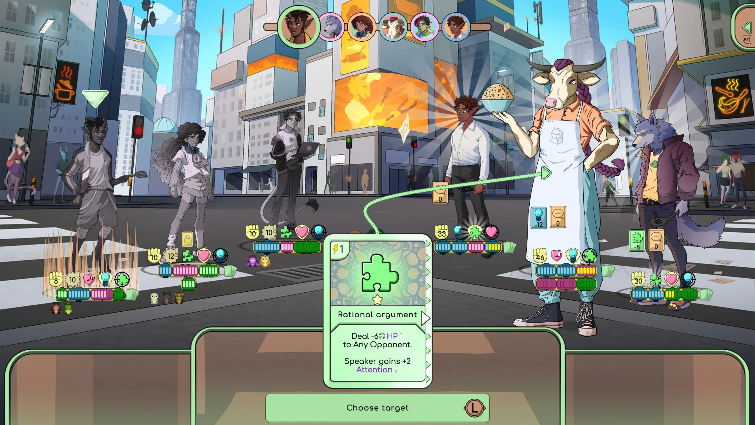 Составьте команду из семи доступных персонажей (выберите Луку, если вам по нраву понурый эмо-бой, или Райли, если цените отпадные танцевальные движения).