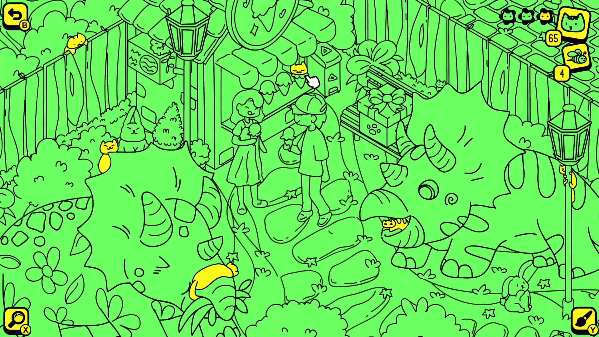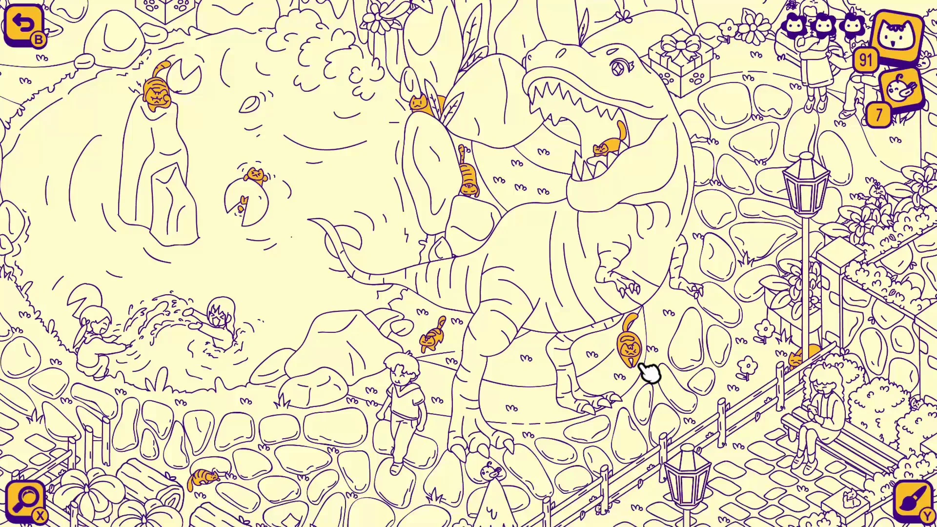 У вас хорошо получается разыскивать котов? Если вы сможете найти их всех, администрация дино-парка будет очень признательна! ^^
