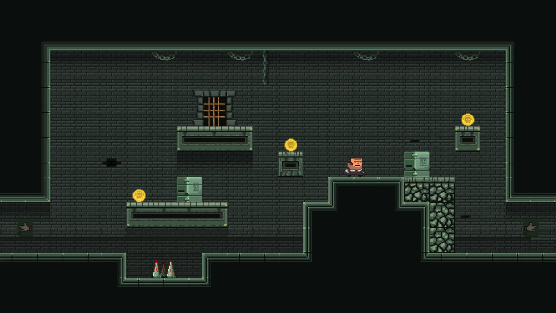 Чтобы сбежать с каждого уровня, вам нужно собрать все монеты и проложить путь к выходу с уровня. Это опасное место, полное ловушек и безжалостных врагов, будьте осторожны!