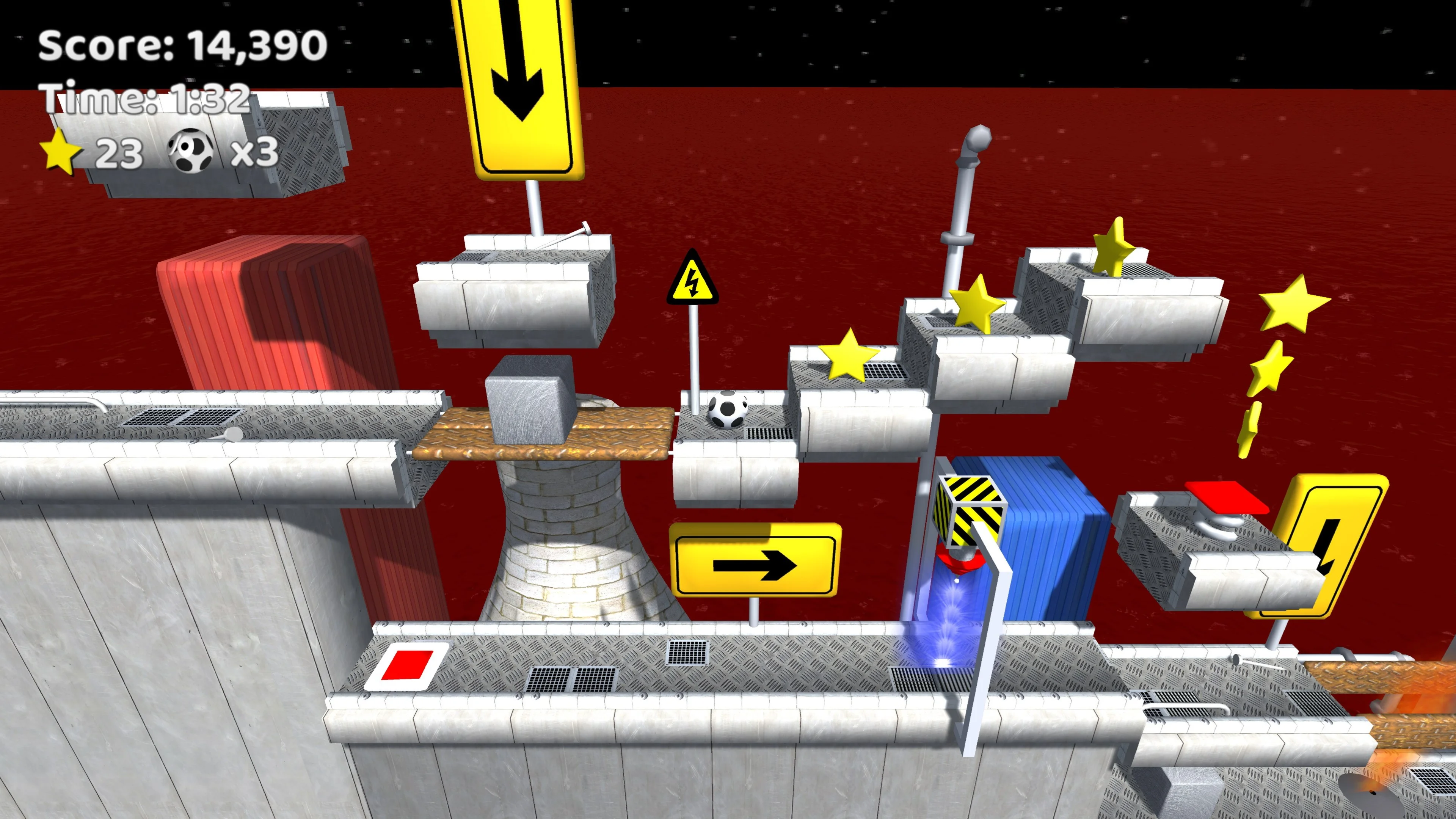 On A Roll 3D is a classic platformer that mixes the regular 2D format with a 3D twist as many of the platforms cross in front of each other. There are plenty of puzzles thrown in that combine realistic physics and logical reasoning with switches, levers and pushable blocks required to open doors and trapdoors, and to reach otherwise inaccessible places.