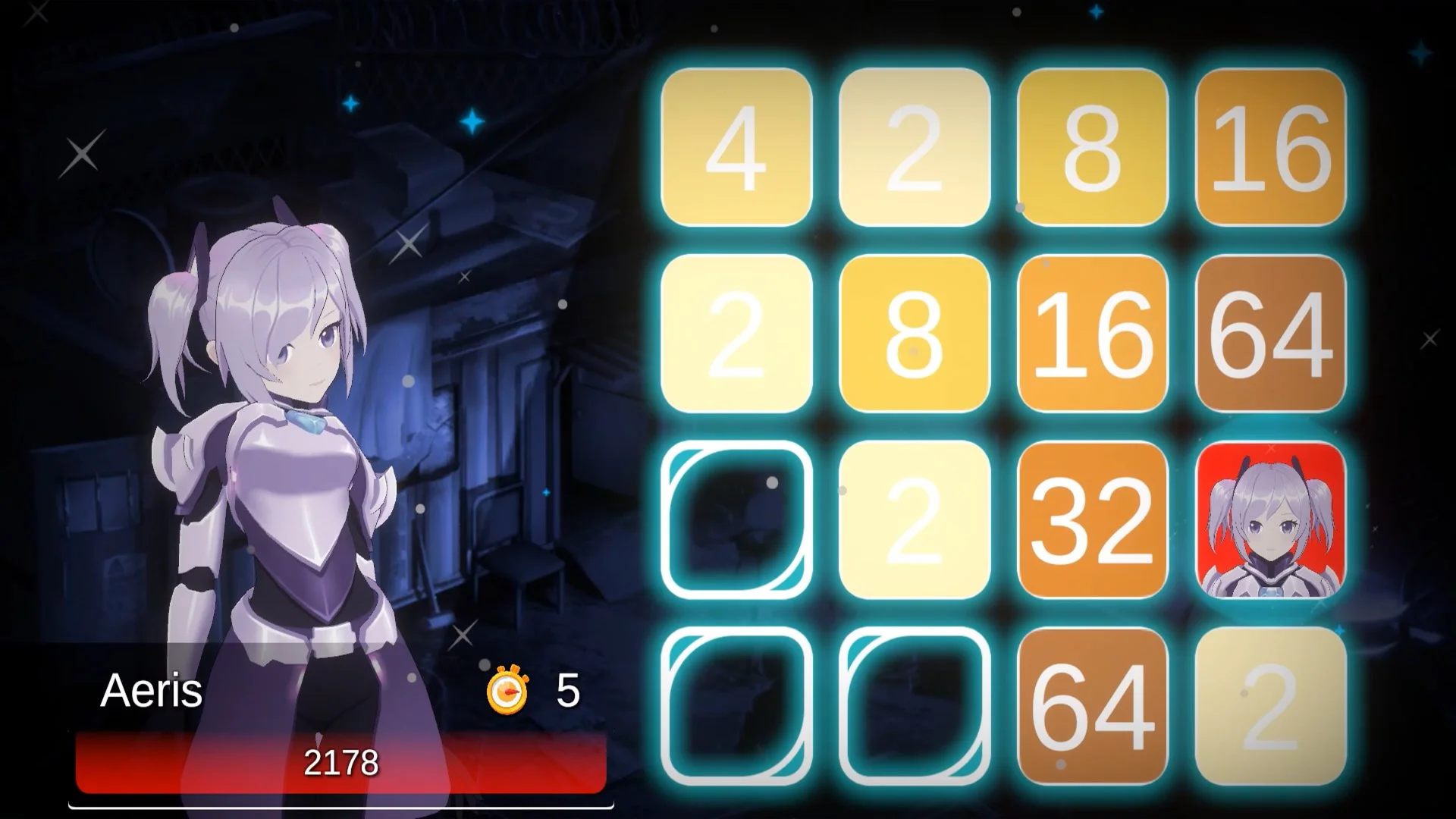 Battle Puzzle 2048 - Space Girls - захватывающая вариация классической головоломки 2048! Перемещайте плитки, чтобы комбинировать совпадающие числа, создавайте мощные комбо и разрабатывайте стратегию для победы. Играйте в бесконечном режиме, чтобы набрать максимально возможное количество очков, или сразитесь с одним из семи очаровательных, но сложных врагов-космических девушек, каждый из которых обладает уникальной способностью, такой как щиты, исцеление, понижение плиток или случайное разрушение.