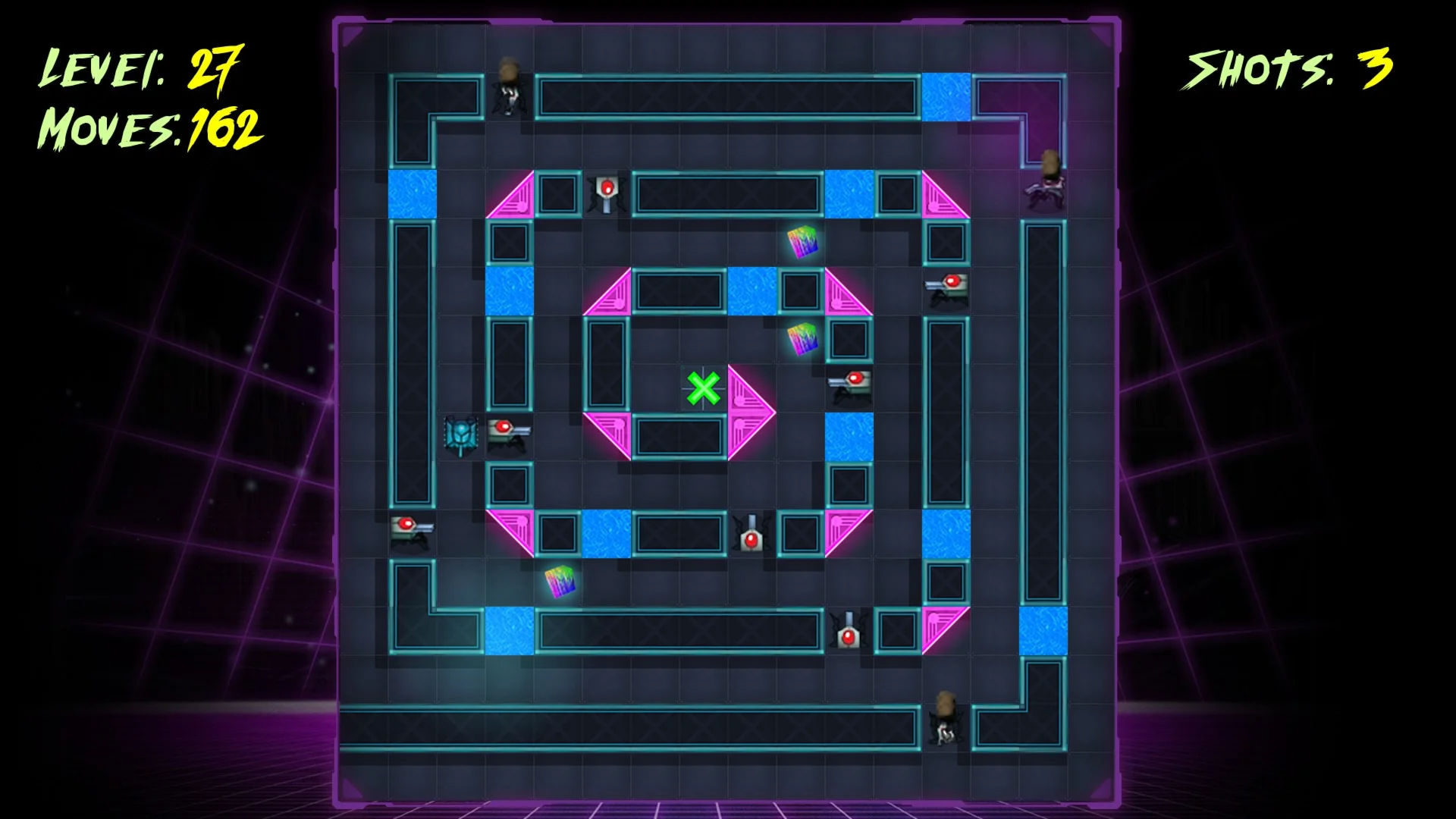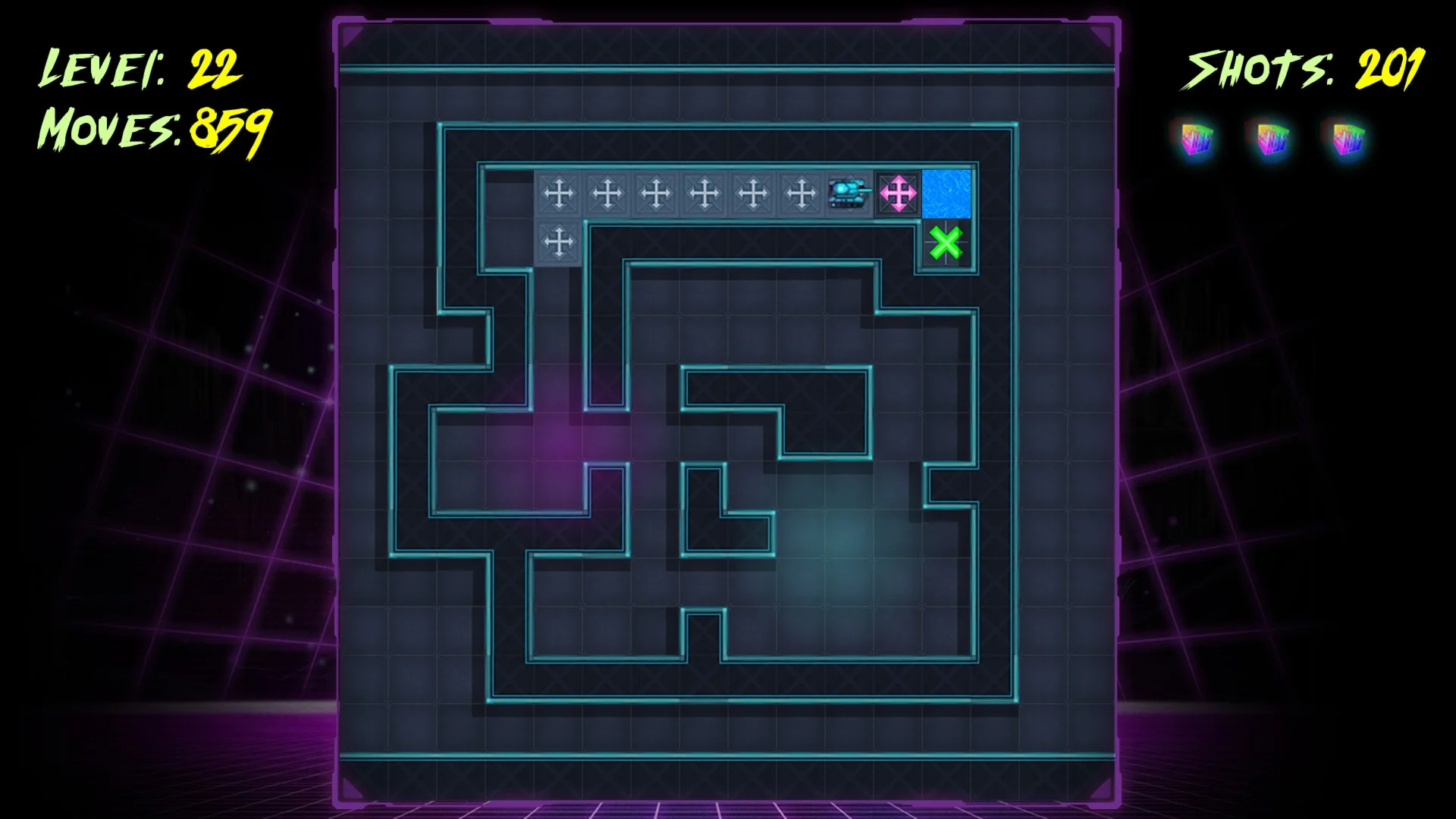 "Cyber Tank" is a challenging puzzle game which adds various mechanics on top of the Sokoban genre: