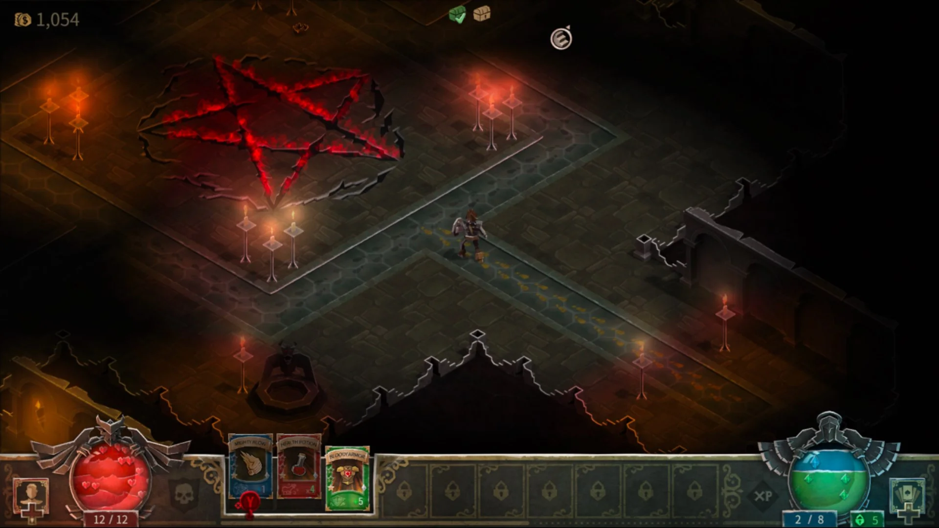Карты и построение колоды. Это не карточная игра, но предметы, заклинания и навыки представлены в виде карт. Стратегия заключается в адаптации вашей руки к каждой ситуации. Карты можно улучшать с помощью рун, и вы можете найти множество вариантов с разнообразными бонусами. Легендарные предметы — самые эпические, но их трудно приобрести.