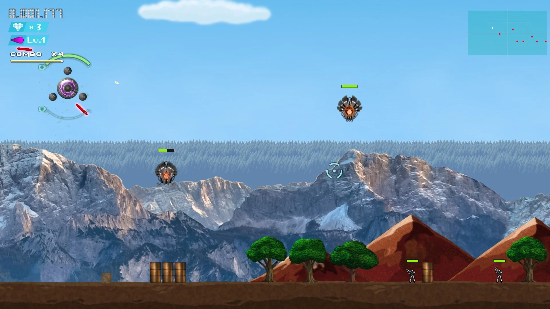 Классический многонаправленный (360°) shoot 'em up. Проведите свой НЛО через опасные среды с опасными врагами и побеждайте огромных боссов!