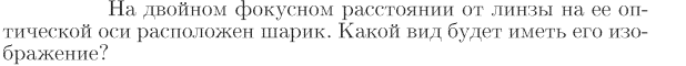 На двойном фокусном расстоянии от линзы на ее оптической оси расположен шарик. Какой вид будет иметь его изображение?