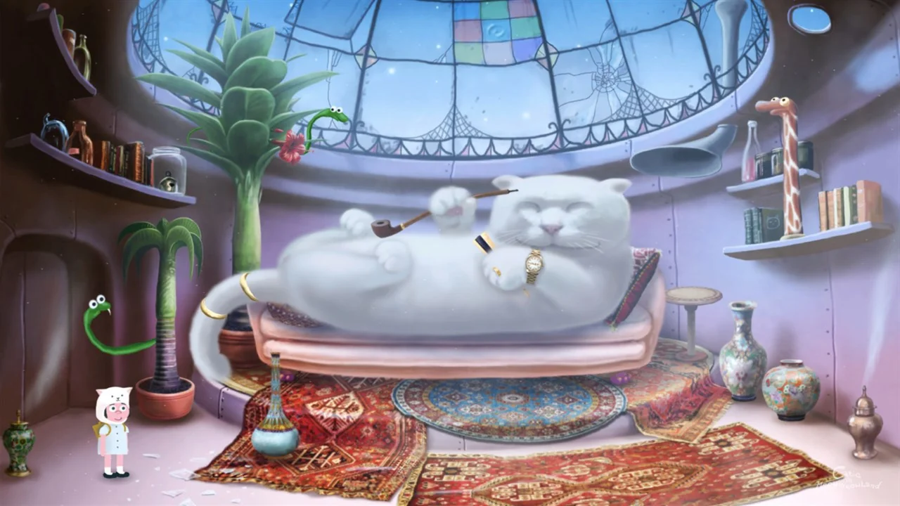Catie in MeowmeowLand — это классическая юмористическая приключенческая игра в жанре "укажи и щелкни". Сюжет разворачивается в чудесном и странном мире, полном кошек и смешных персонажей.