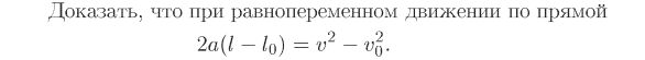 Доказать, что при равнопеременном движении по прямой 2а(L - L0)=v2 - v02.