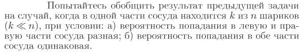 Попытайтесь обобщить результат предыдущей задачи на случай, когда в одной части сосуда находится к из п шариков (k