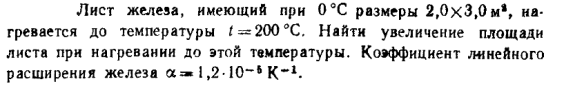 Лист железа, имеющий при 0°С размеры 2,0 x 3,0 м2, нагревается до температуры t = 200°С. Найти увеличение площади листа при нагревании до этой температуры. Коэффициент линейного расширения железа а = 1,2·10-5 K-1.