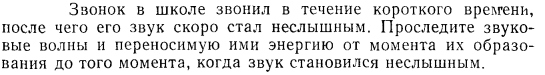 Звонок в школе звонил в течение короткого времени, после чего его звук скоро стал неслышным. Проследите звуковые волны и переносимую ими энергию от момента их образования до того момента, когда звук становился неслышным.