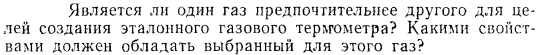 Является ли один газ предпочтительнее другого для целей создания эталонного газового термометра? Какими свойствами должен обладать выбранный для этого газ?
