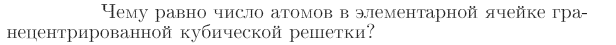 Чему равно число атомов в элементарной ячейке гранецентрированной кубической решетки?