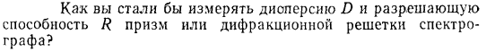 Как вы стали бы измерять дисперсию D и разрешающую способность R призм или дифракционной решетки спектрографа?