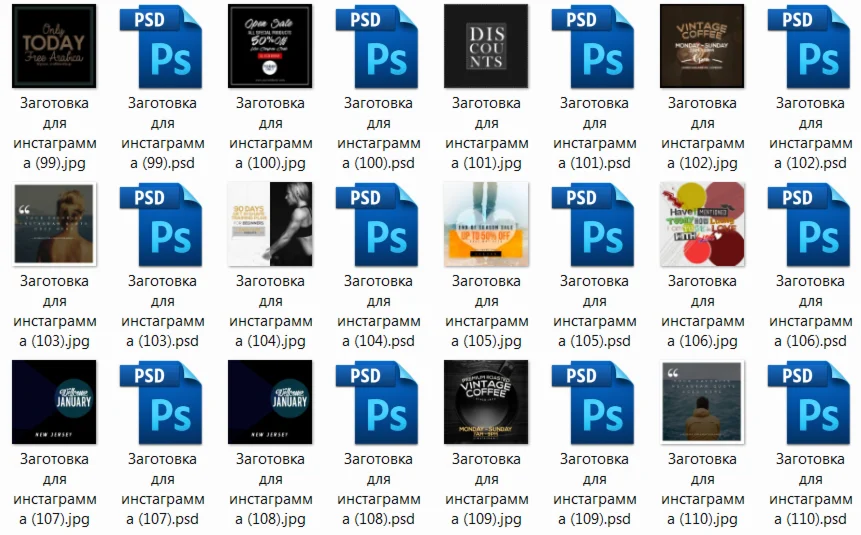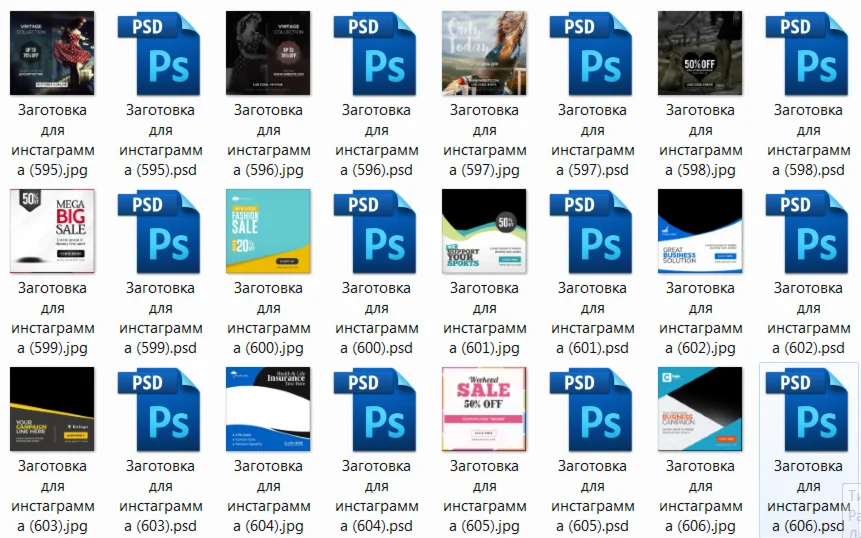 Магазин » 1200 PSD заготовок (шаблонов) публикаций для Instagram