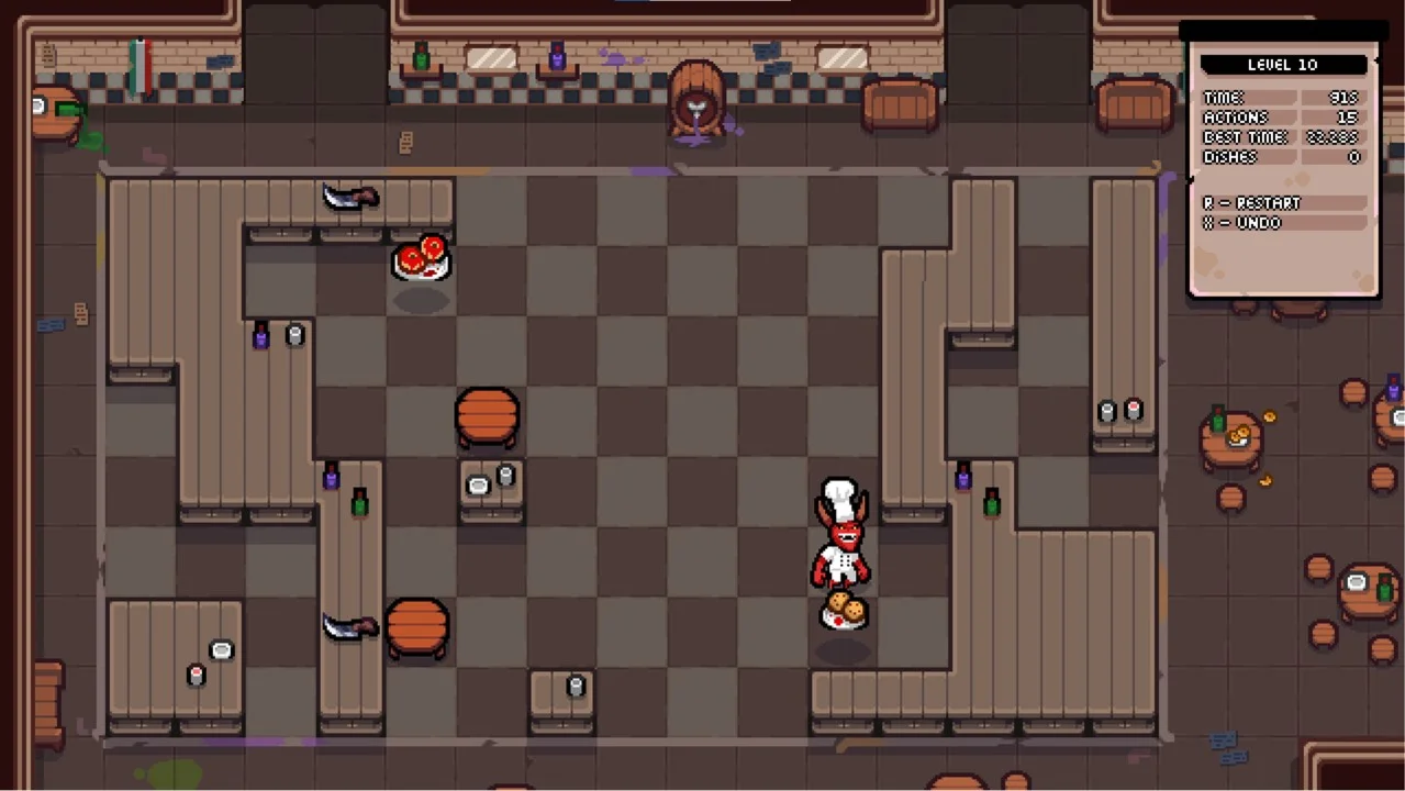 Эта очаровательная игра-головоломка в пиксельном искусстве предлагает 30 уровней, которые становятся все более сложными, в 3 уникальных биомах. Подавайте блюда, искусно решая головоломки с дьявольским поворотом!