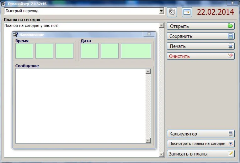 Готовый проект Органайзер. Имеет функции: напоминания, блокнота, калькулятора, телефонной книги. Отлично подойдет для студентов средних специальных учебных заведений.