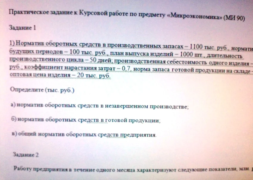 1) Норматив оборотных средств в производственных запасах – 1100 тыс. руб., норматив расходов будущих периодов – 100 тыс. руб., план выпуска изделий – 1000 шт., длительность производственного цикла – 50 дней; производственная себестоимость одного изделия – 18 тыс. руб.; коэффициент нарастания затрат – 0,7, норма запаса готовой продукции на складе – 7 дней, оптовая цена изделия – 20 тыс. руб.