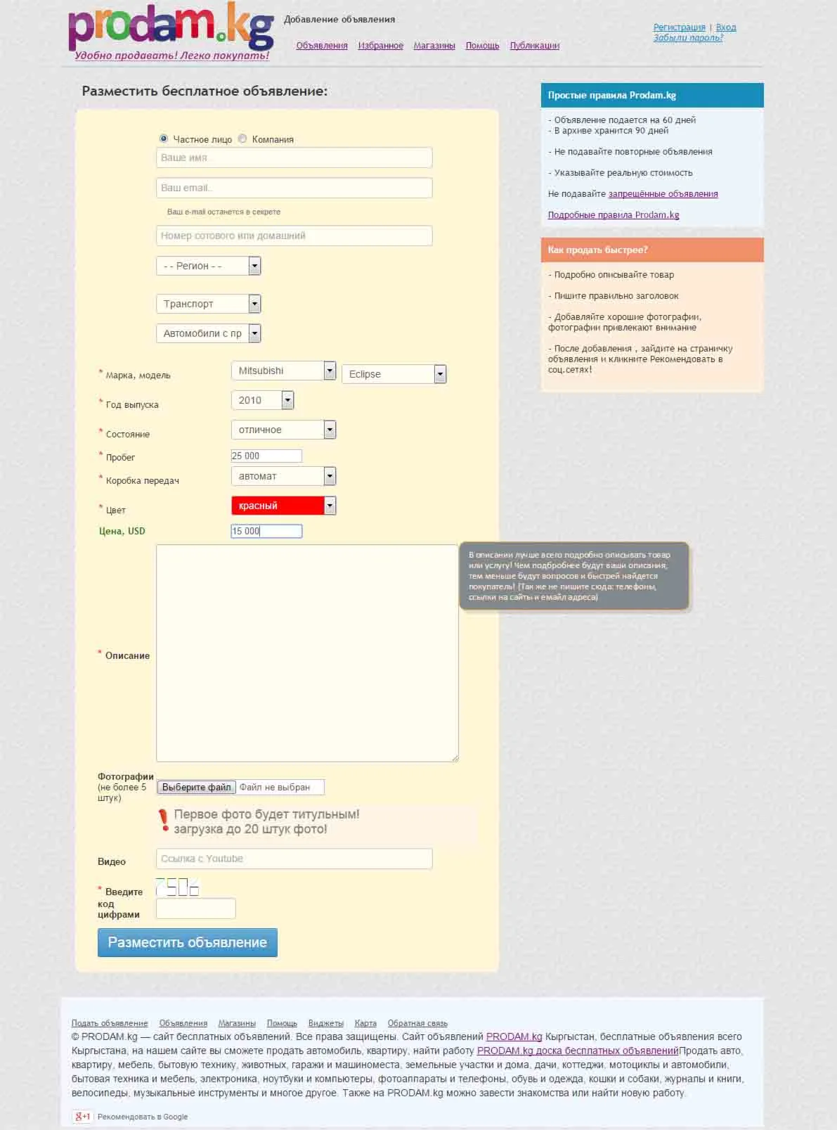 -добавление объявлений без регистрации (с послед.регистрацией ваши объявления появляются в личном кабинете)