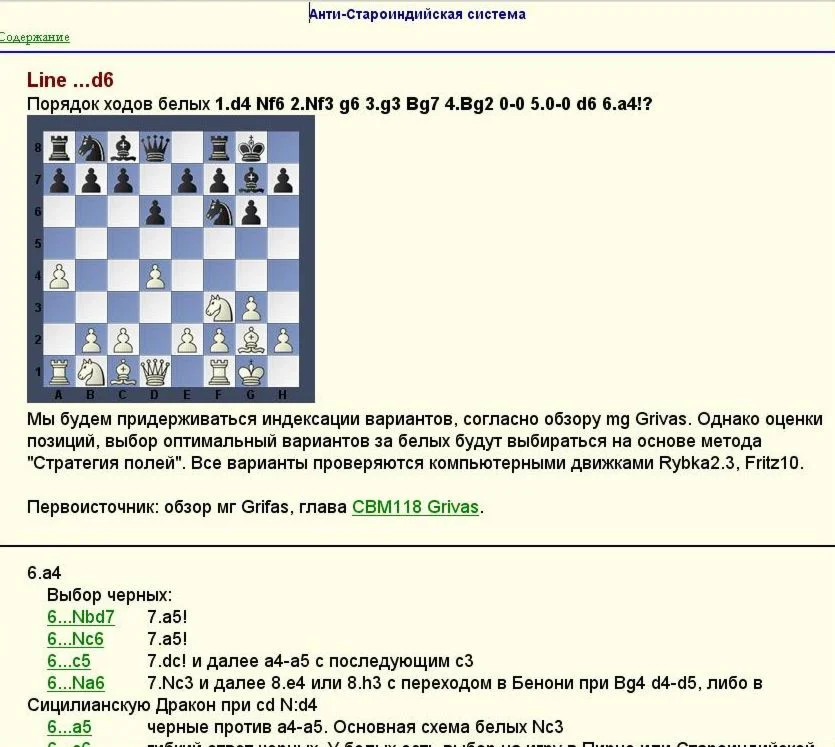 Альтернативных схема игры за белых против g6-построений. За основу взят вариант Анти-KID - 6.a4!? Игра в основном строится на позиционный прессинг. Также включены линии игры белыми против ...d5 (Симметричный Грюнфельд), ...c5 (Бенони), раннее ...g6, ...Bg7 (Модерн).