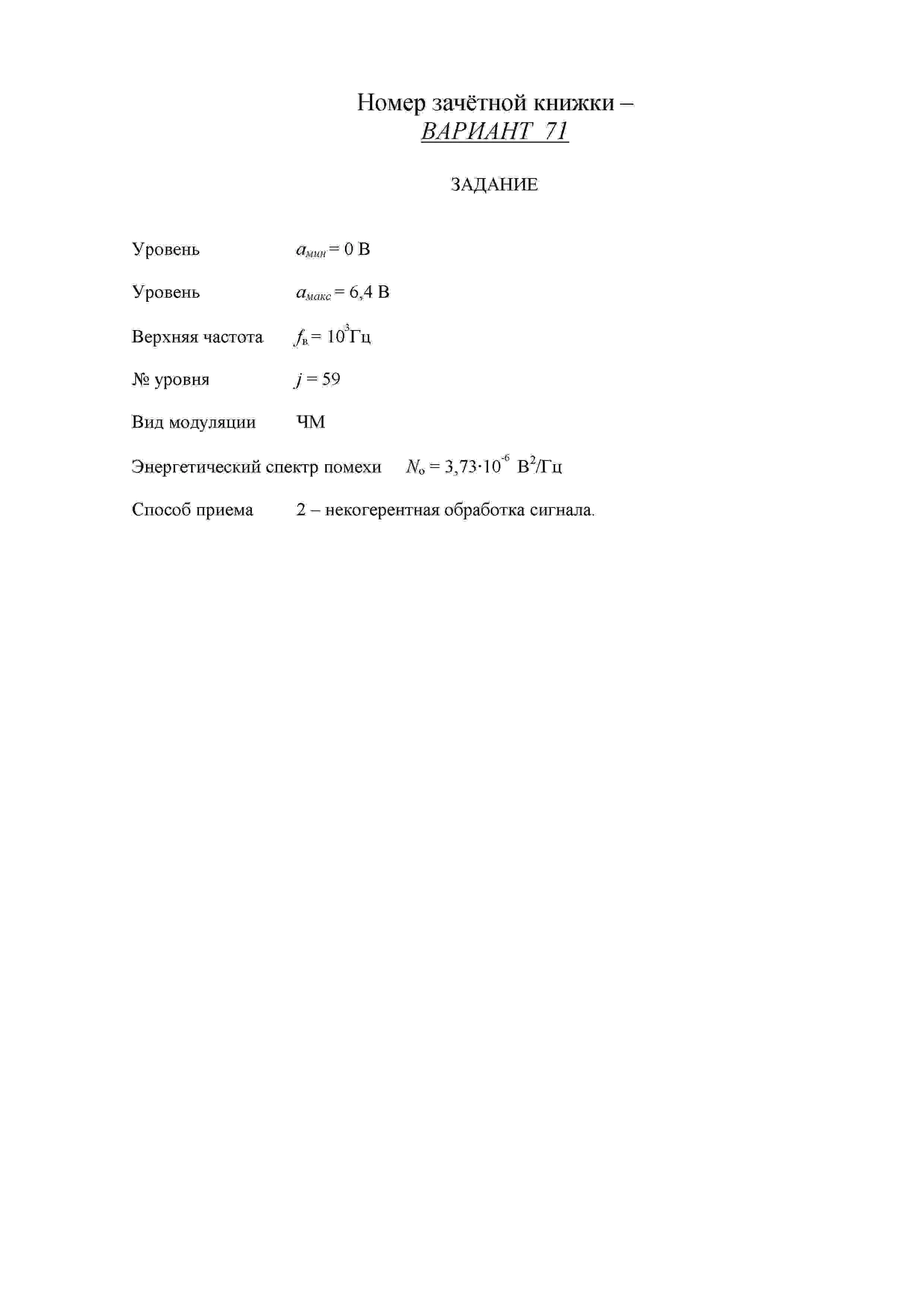 Магазин » Курсовой по Теории электрической связи СПбГУТ вар 71