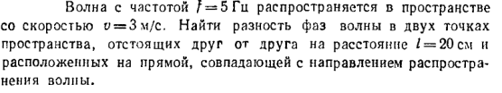 Волна с частотой f = 5 Гц распространяется в пространстве со скоростью v = 3 м/с. Найти разность фаз волны в двух точках пространства, отстоящих друг от друга на расстояние l = 20 см и расположенных на прямой, совпадающей с направлением распространения волны.