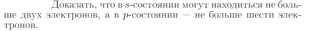 Доказать, что в s-состоянии могут находиться не больше двух электронов, а в р-состоянии — не больше шести электронов.