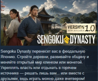Sengoku Dynasty перенесет вас в феодальную Японию. Стройте деревни, развивайте общину и меняйте открытый мир клинком или монетой. Укреплять власть или отдыхать в горячем источнике — решать лишь вам... или вместе с друзьями, ведь играть можно даже вчетвером!