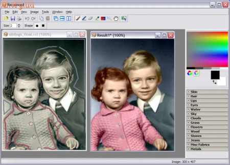 С помощью сможете придать вашим фото цветность, причем цвета кожи будут соответсвовать действительности. Цвета глаз, волос, кожи и т.д. можно задавать отдельно.