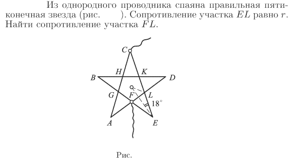 Из однородного проводника спаяна правильная пятиконечная звезда (рис. 26.3). Сопротивление участка EL равно r. Найти сопротивление участка FL.
